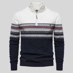 Tento svetr má charakteristický pletený vzor a střední zip, který poskytuje teplo, pohodlí a elegantní styl. Ideální oblečení na chladné měsíce.