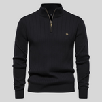 Přijměte eleganci a pohodlí s žebrovaným svetrem James. Ať už běháte po nákupech, účastníte se schůzky, nebo si užíváte večer venku, tento univerzální svetr vás udrží vypadat skvěle. Udělejte si z něj součást svého šatníku ještě dnes!