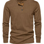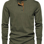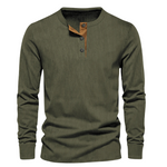 ✔️ Henley límeček s knoflíky – Moderní detail, který povyšuje klasický dlouhý rukáv na nový level