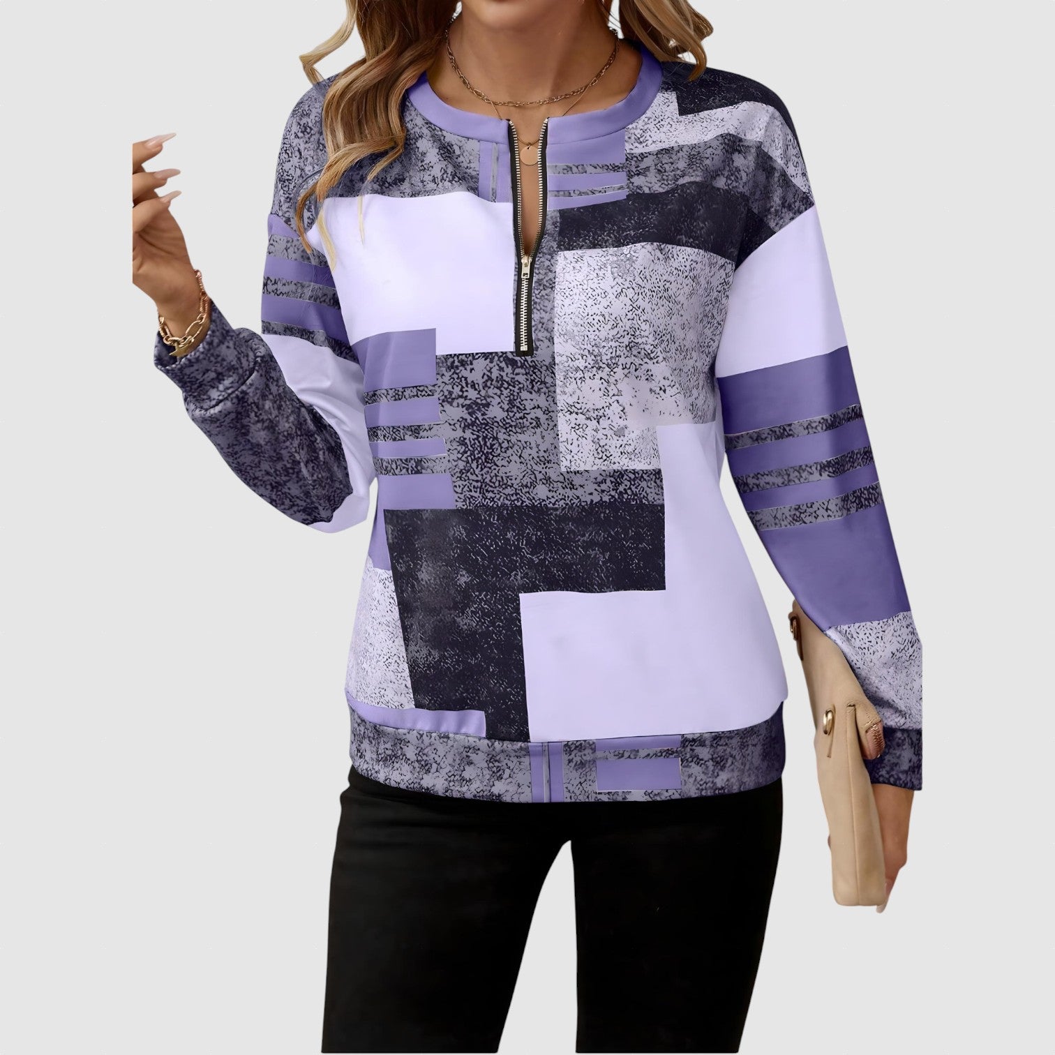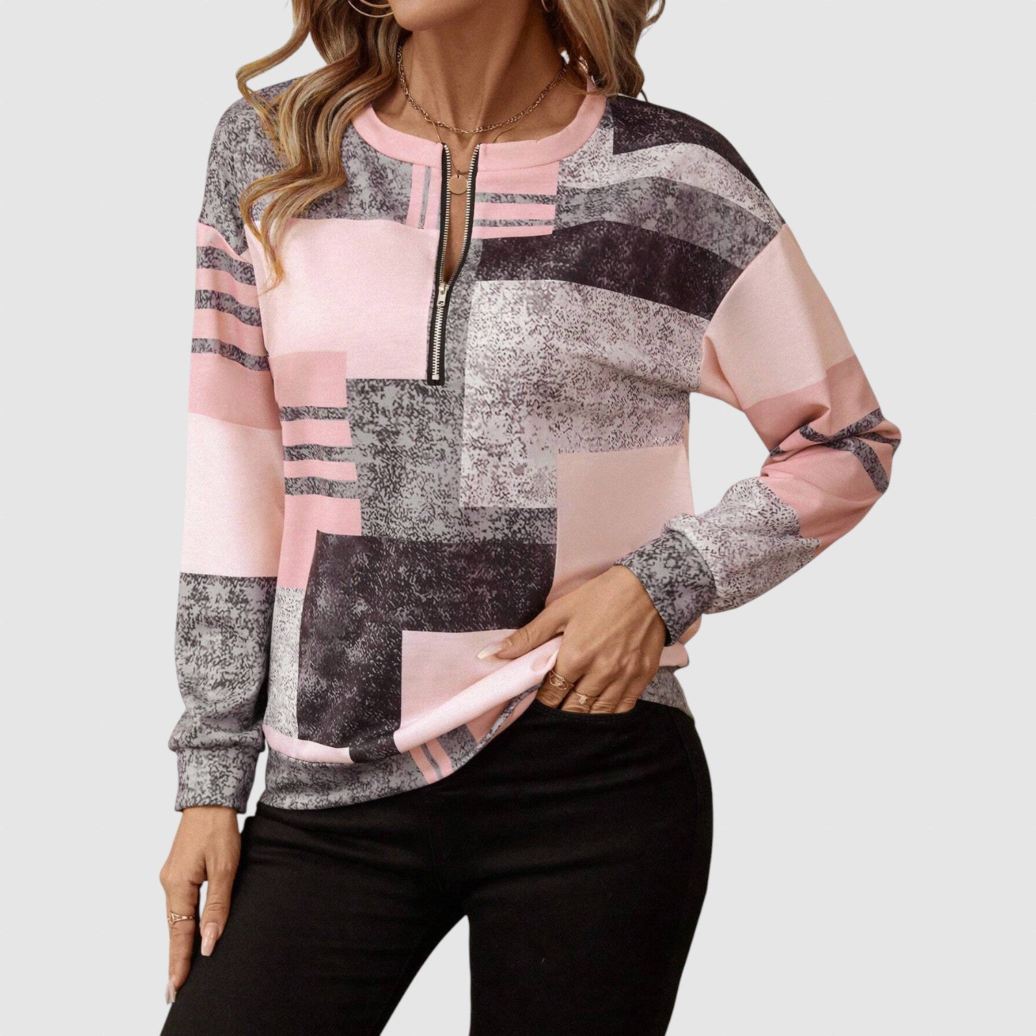 - Uvolněný Střih s Polovičním Zipem: Snadné nošení a ideální pro všestranné stylování.