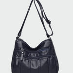 Praktická crossbody taška v černé barvě s měkkou texturou a funkčním designem. Disponuje několika vnějšími kapsami se zipem, které nabízejí snadnou organizaci a rychlý přístup k nezbytnostem. Nastavitelný popruh umožňuje pohodlné nošení po celý den, což z ní činí ideální volbu pro každodenní neformální vzhled.