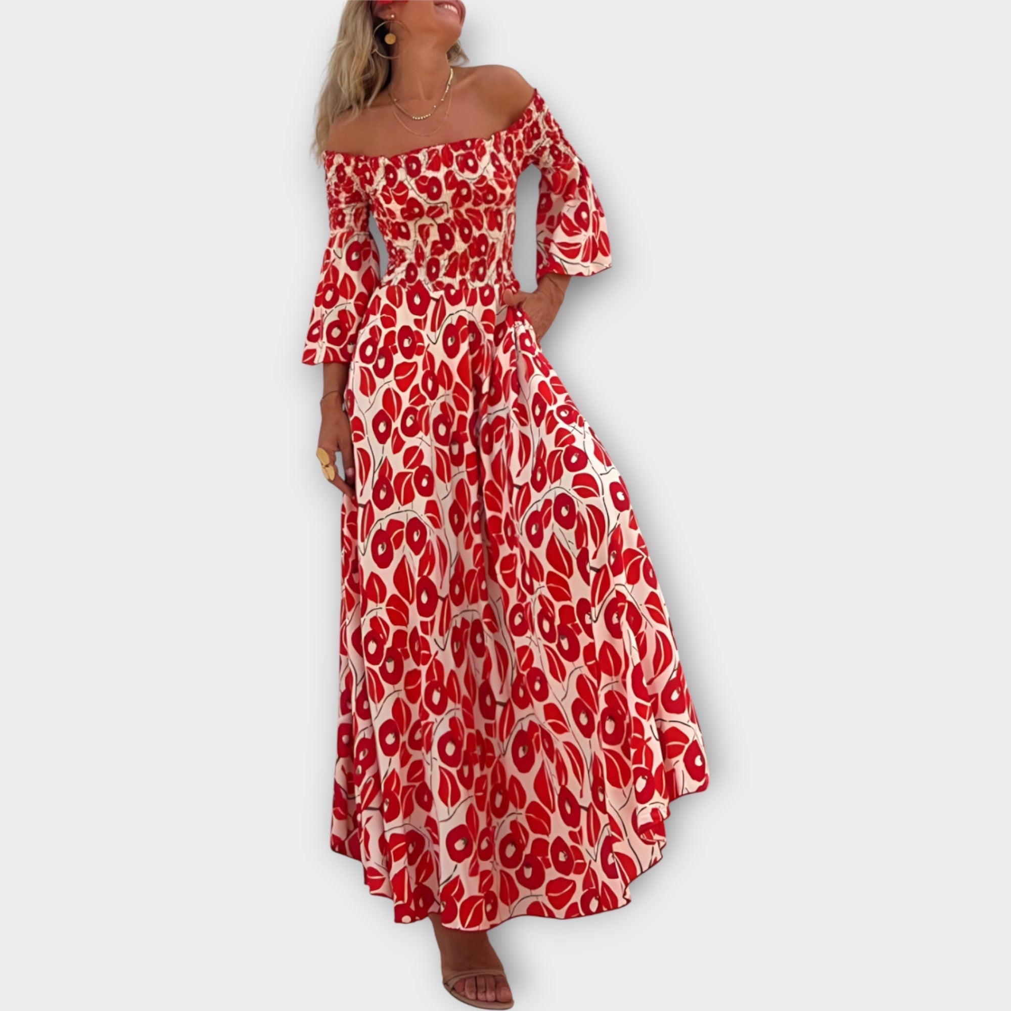 Dlouhé Šaty S Odhalenými Rameny Romantický Střih Elegantní